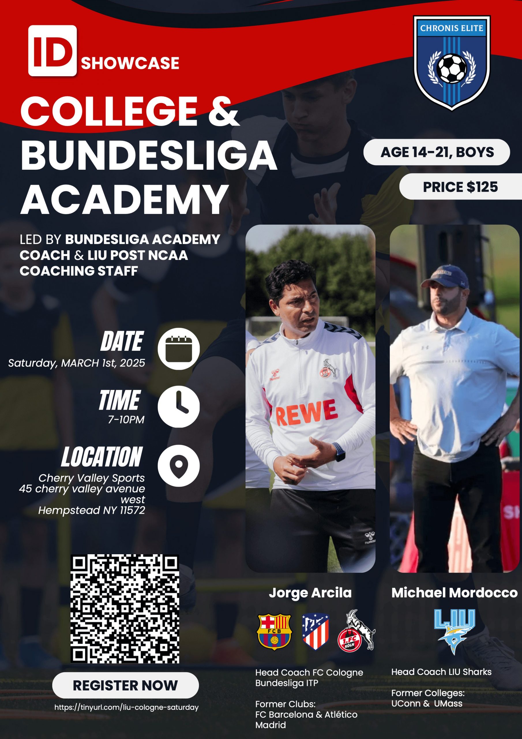 Bundesliga & College ID – Saturday, March 1st, 2025 (7-10pm) at Cherry Valley Sports.